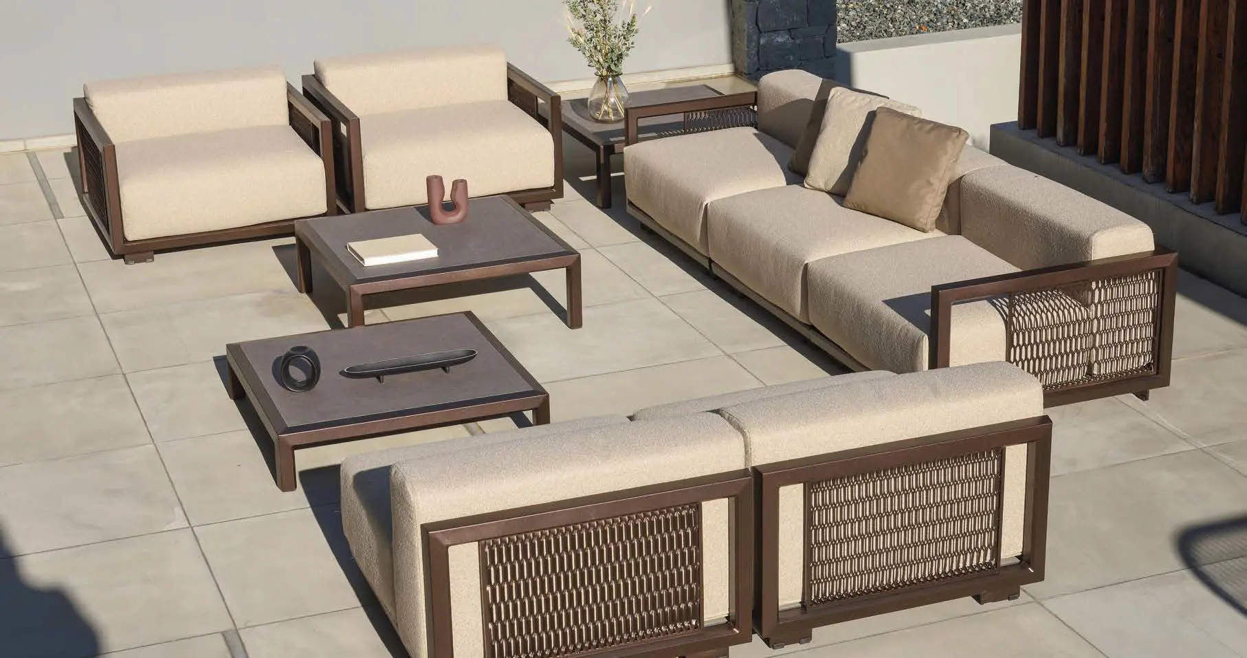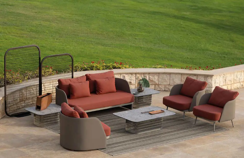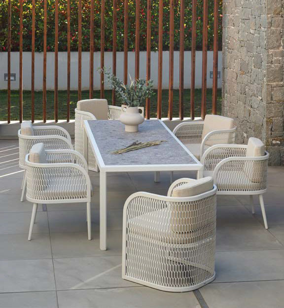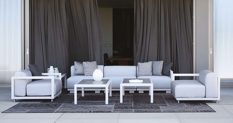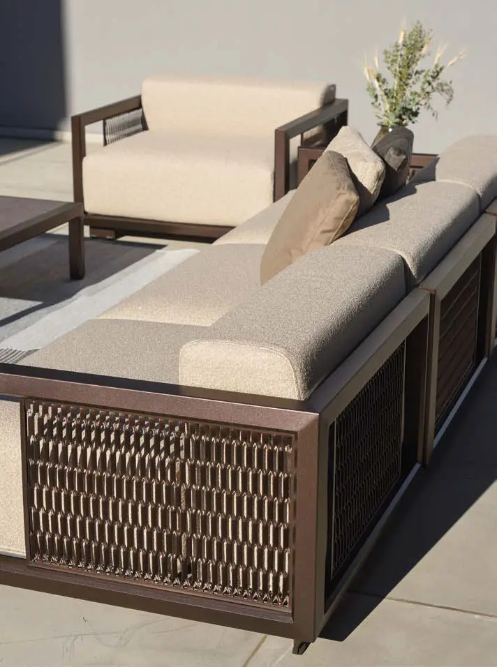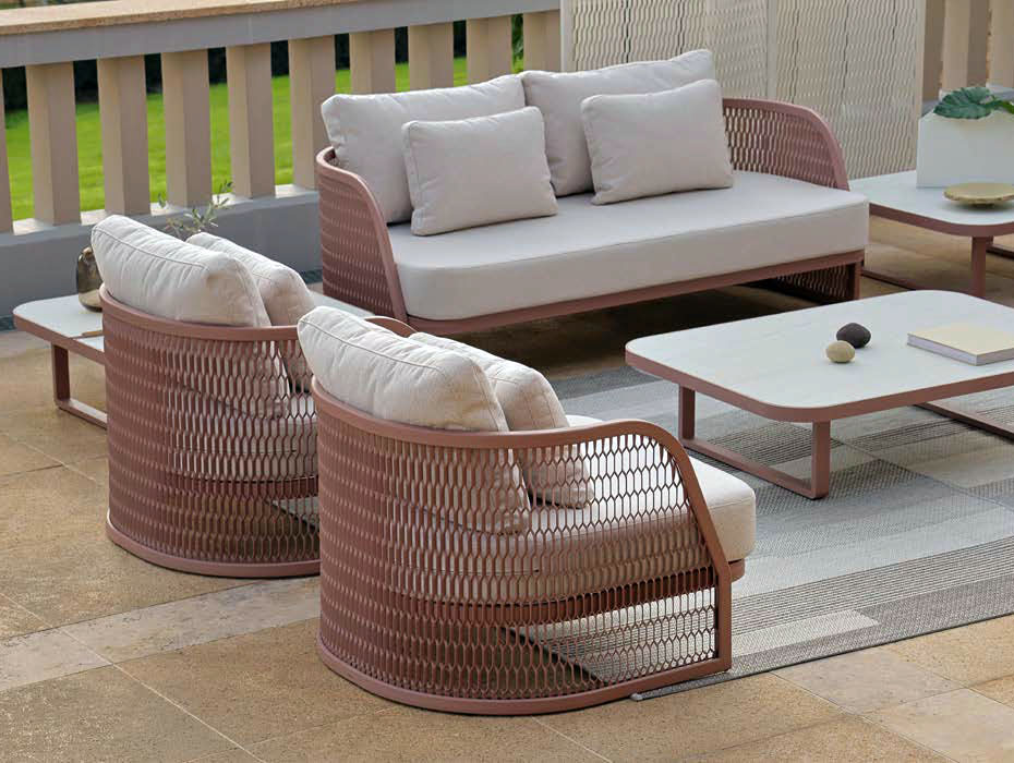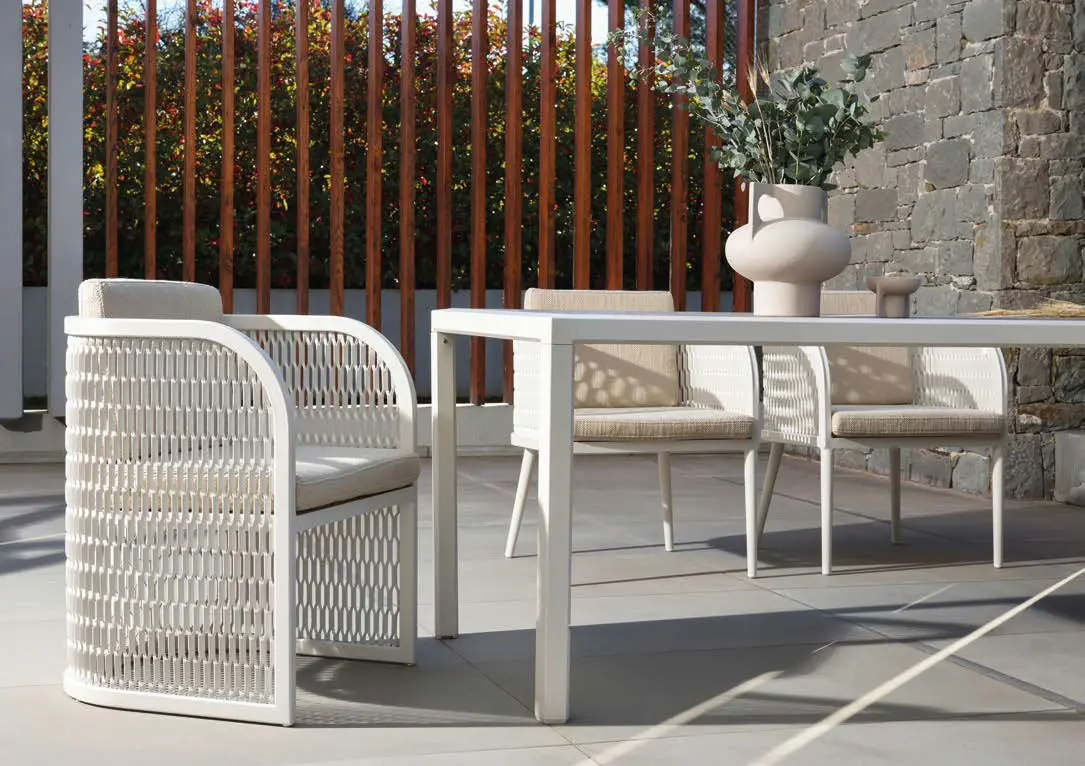 We are delighted to introduce 10Deka, a refined collection of outdoor furniture made in Greece from extruded high quality Aluminium. Each piece is created to the highest standard using precise laser cutting, welding and hand-finished to ensure a perfect result. Many pieces have hand-woven cord or belt features that are truly unique. All these beautiful designs are available in 14 powder coated colours that are baked hard using one of largest ovens in Europe. Cushions use high resilient foam and are available in a carefully chosen range of hard wearing fabrics.