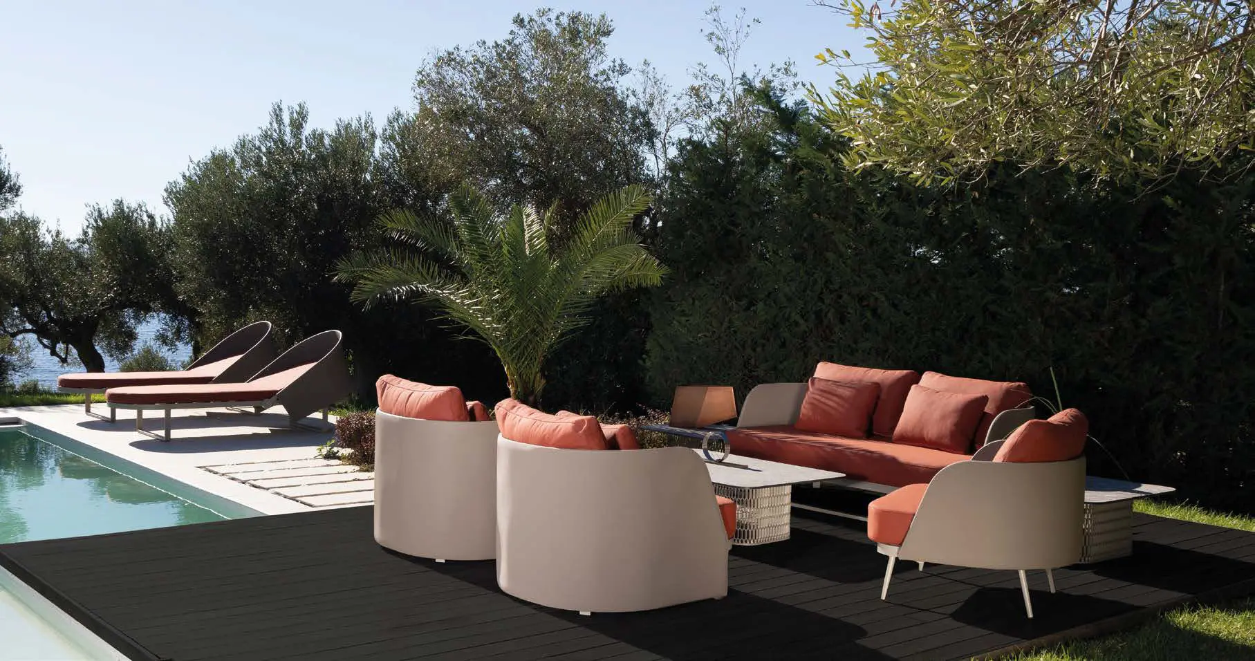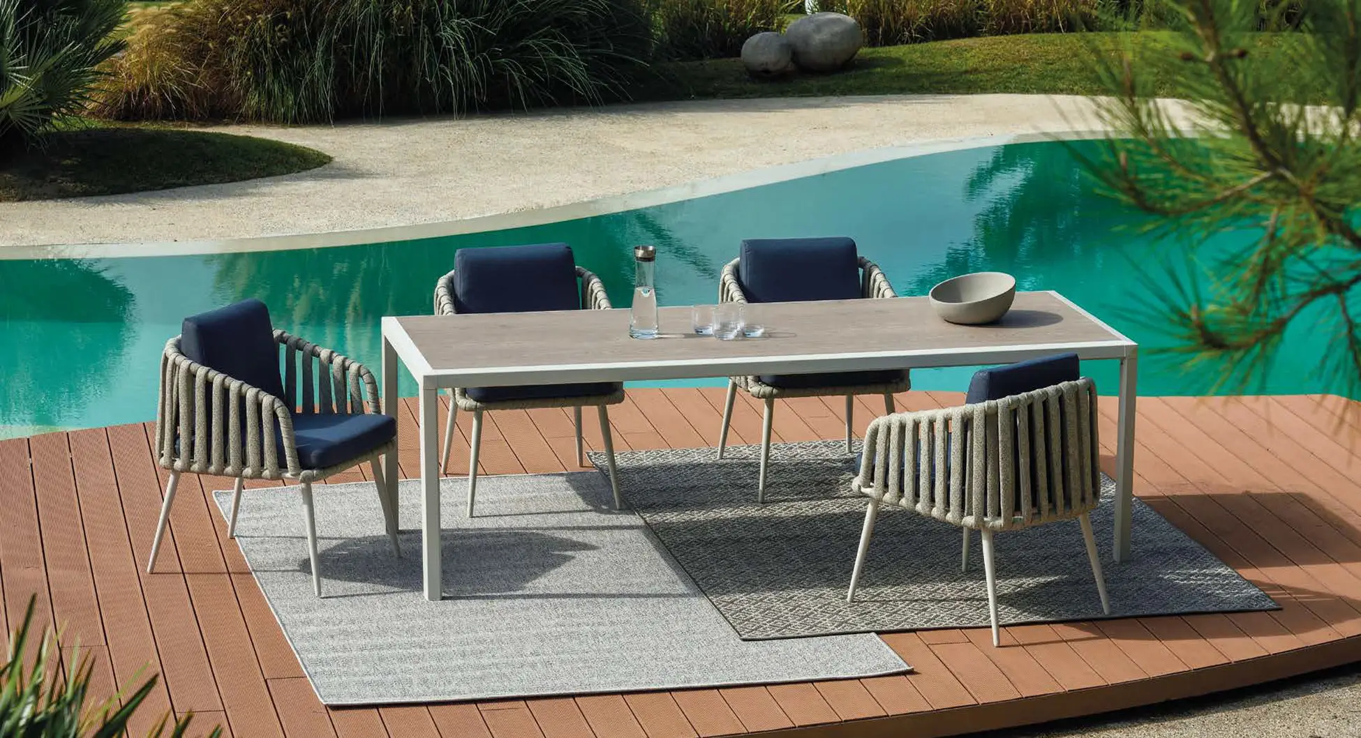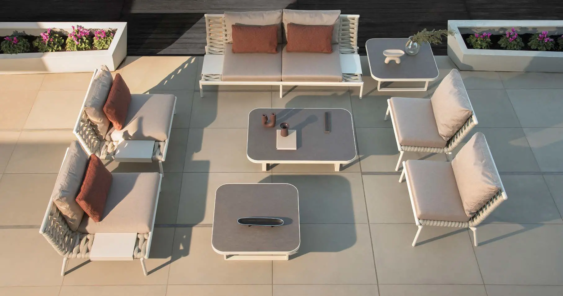 We are delighted to introduce 10Deka, a refined collection of outdoor furniture made in Greece from extruded high quality Aluminium. Each piece is created to the highest standard using precise laser cutting, welding and hand-finished to ensure a perfect result. Many pieces have hand-woven cord or belt features that are truly unique. All these beautiful designs are available in 14 powder coated colours that are baked hard using one of largest ovens in Europe. Cushions use high resilient foam and are available in a carefully chosen range of hard wearing fabrics.