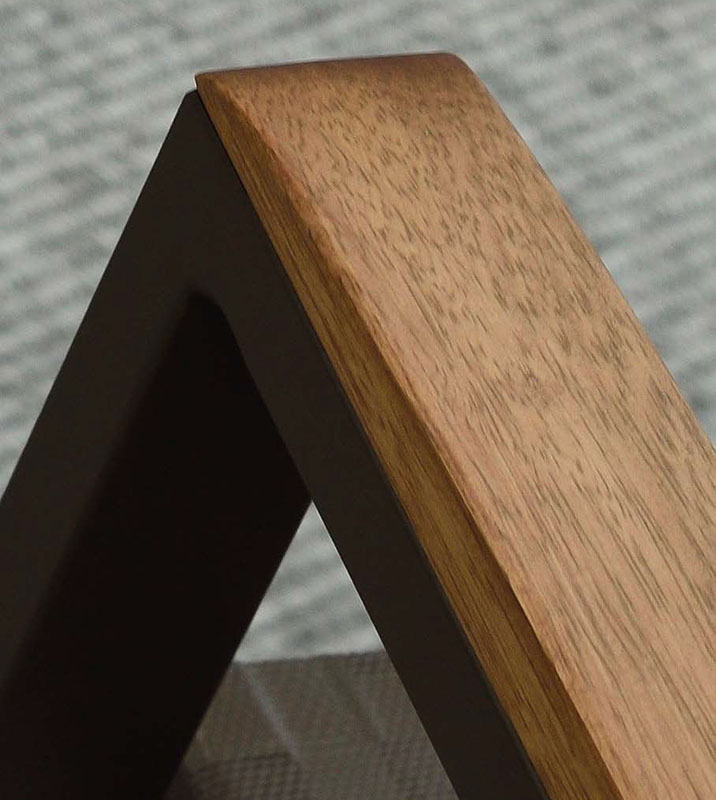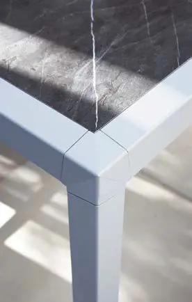 Dining and occasional tables are produced in house using the same techniques and incorporate tops made from compressed HPL laminates of 12mm thickness and 20 finish options. These are all heat and stain resistant and are a really hard wearing easy care material that compliment this unique collection.